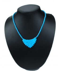 Kjede med 4mm kuler og vifte i turkis, 45 cm langt med sølvlås.