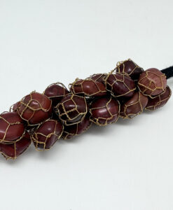 Drueklase med rød/brune jaspis. Messingtrådene rundt steinene gjør at du kan forme «druene» slik du selv ønsker.