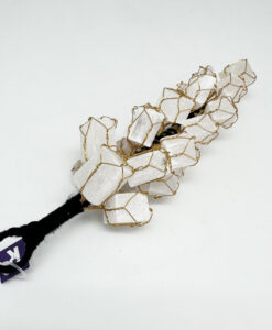 Drueklase med rå. kubeformede selenitter. Messingtrådene rundt steinene gjør at du kan forme «druene» slik du selv ønsker.