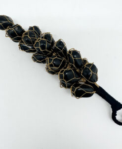 Drueklase med sort, halvmatt agat. Messingtrådene rundt steinene gjør at du kan forme «druene» slik du selv ønsker.