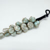 Drueklase med spektrolitt med skinnende mørke krystaller i blått og grått. Messingtrådene rundt steinene gjør at du kan forme «druene» slik du selv ønsker.
