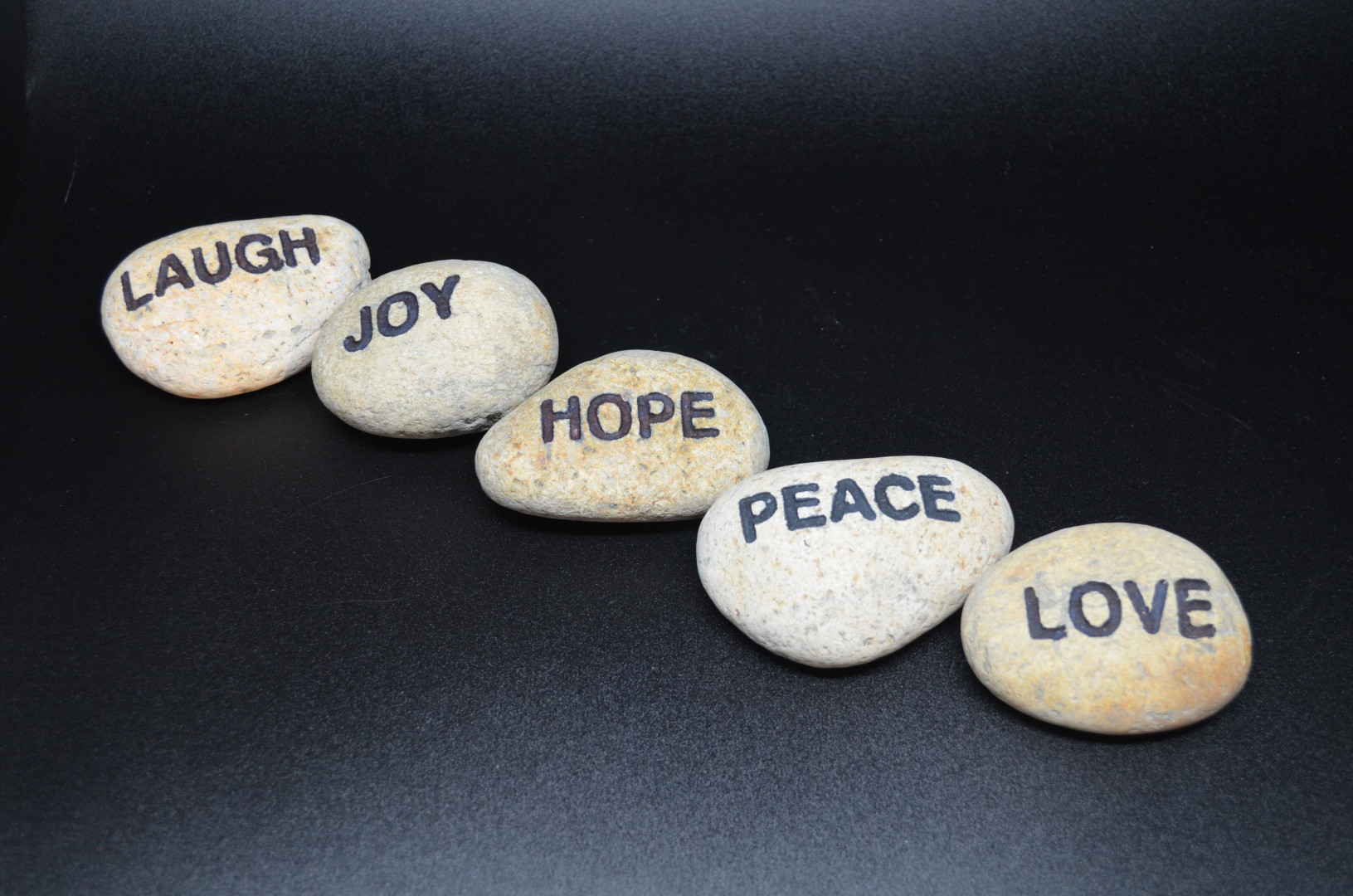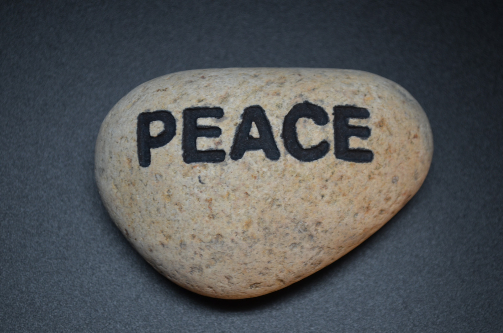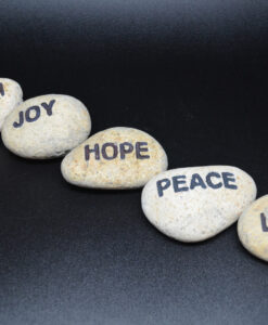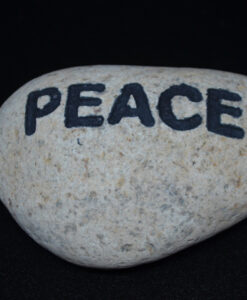 Glatt og naturlig polert elvestein i lys brunt. Inngravert «PEACE». Flott til dekorasjon alene eller sammen med annen pynt.