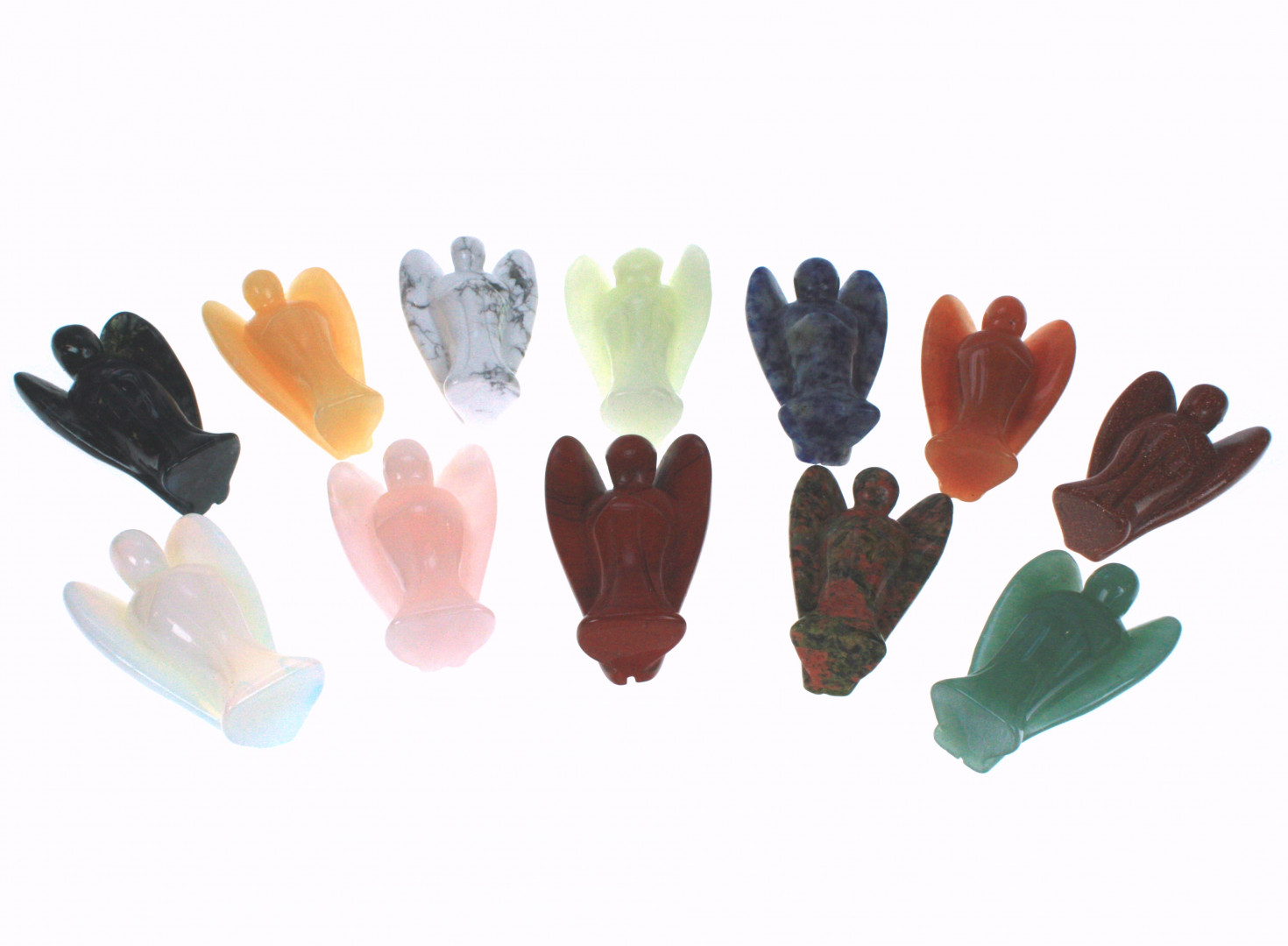 Gaveeske med 12 flotte engler i forskjellige mineraler.