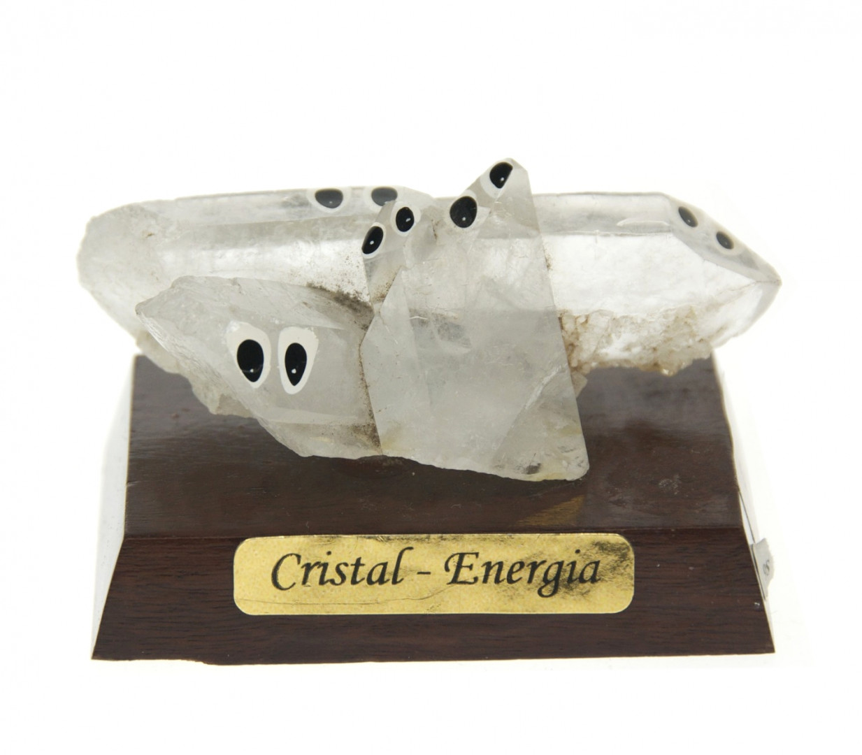 Krystaller med øyne som ser ut som en lykkelig familie av krystaller. På trefot.