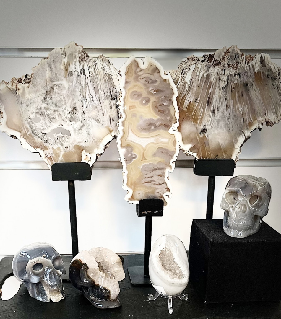 Rund agatskive på høy fot.