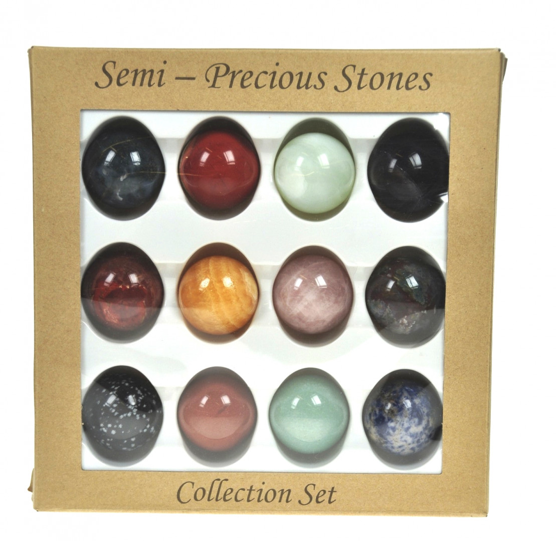 Kuler i assortert sten i gaveeske. 40mm