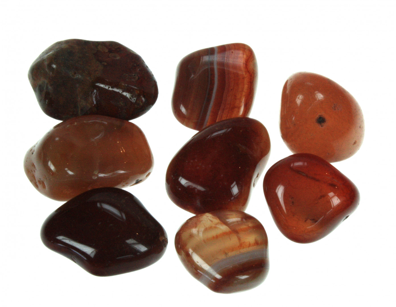 Tromlet og polert agat med brun/oransje mønster