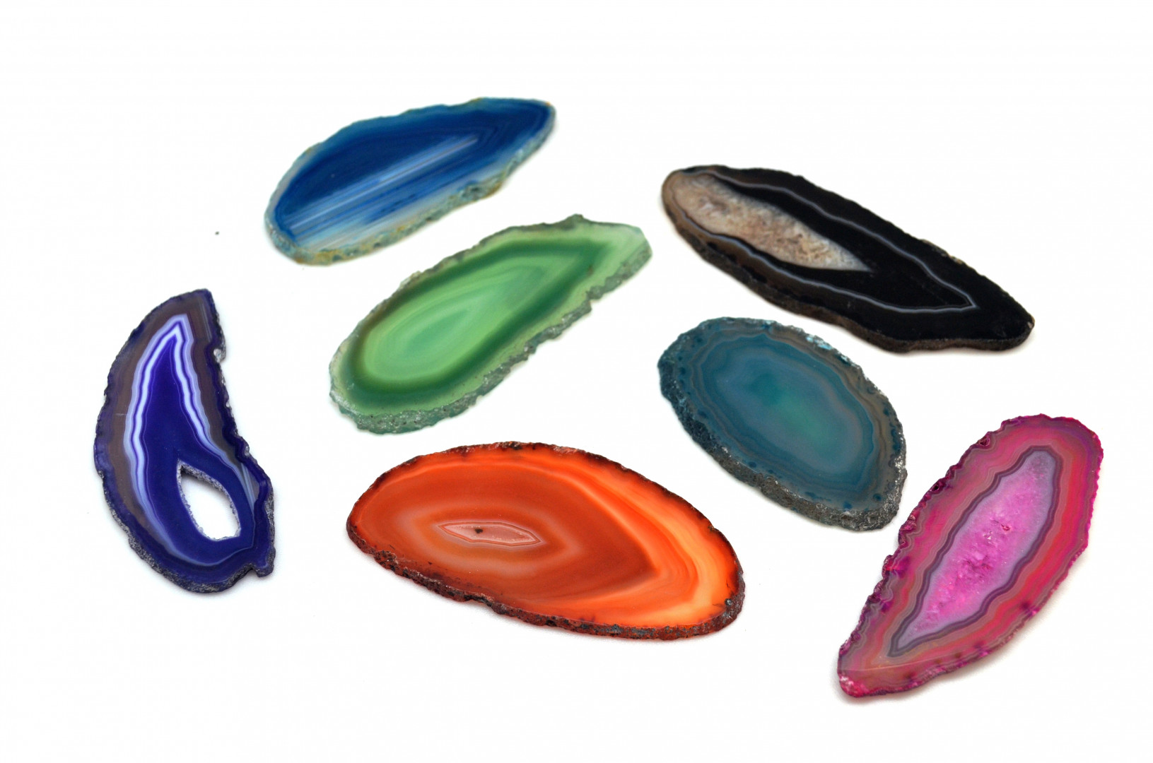 Agatskive i oransje med forskjellig mønstre som er polert på begge sider.