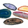 Agatskive i grønt med forskjellig mønstre som er polert på begge sider.