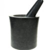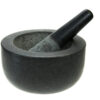 Morter i grå granitt med røff overflate. Dekorativ på kjøkkenet, og nyttig til å lage marinader og knuse krydderurter.