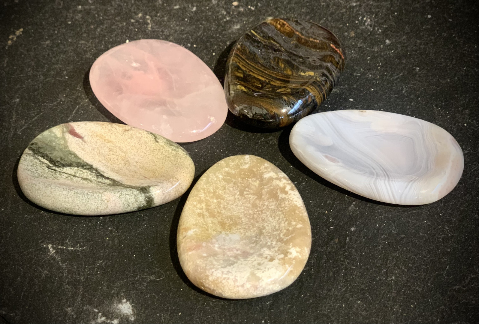 Fingermassasjestein, polert med uthuling for fingeren.
