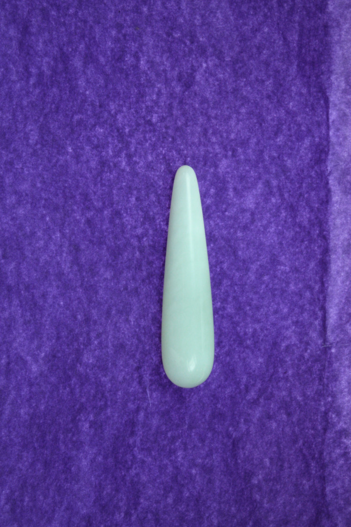 Polert massasjestav i lys, grønn jade som er buet i begge ender. Passer fint for massasje av både små og store muskler.