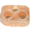 Te lysestake i hvit selenitt med kraftige, dekorative spor på sidene. Fører lyset flott slik at at det skinner gjennom steinen.