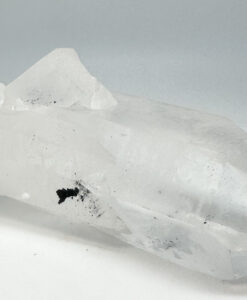 Stor. enkelt. nærmest klart kvartskrystall med et par små krystaller og et parti av rå kvarts i bunnen . Dekorativ og utrolig flott! Fra Brasil.