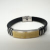 Et tøft lærarmbånd med rå Rav i forskjellige gyldne farger. Det myke læret gir et robust uttrykk sammen med metalldetaljene. Hver Rav er unik med eget mønster og nyanse.