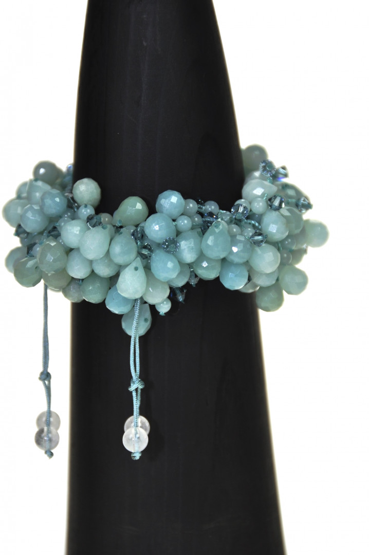 Lekkert armbånd med hengende dråper av lys grønn amazonitt. Armbåndet er regulertbart og behagelig å ha på.