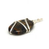 Sort, polert turmalin med flott metalloppheng til kjede