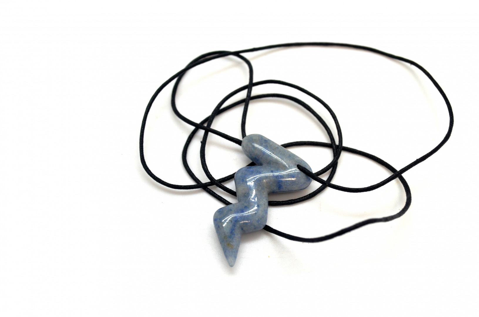 Anheng med lærsnor i blå kvarts formet som et lyn.
