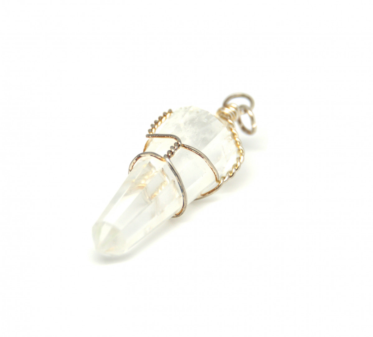 Stor, slipt kvartskrystall til kjede.