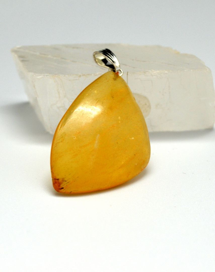 Anheng med store, polerte rav i skinnende gult.