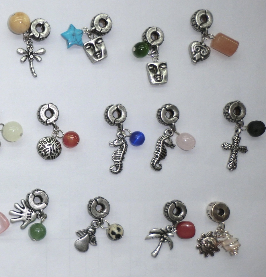 Charm med metallpynt, 1 polert stein og krok til å feste charmen med.