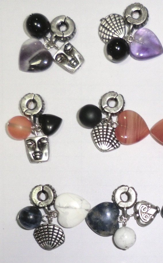 Charm med metallpynt, 2 polerte stein og krok til å feste charmen med.