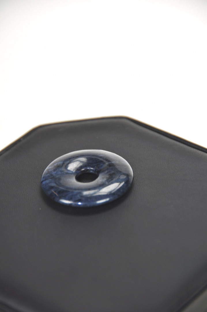 Sirkelanheng i mørk blå domortieritt. Flott sammen med lærsnor.