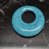 Kvadratisk anheng i turkis med hull til lærsnor.
