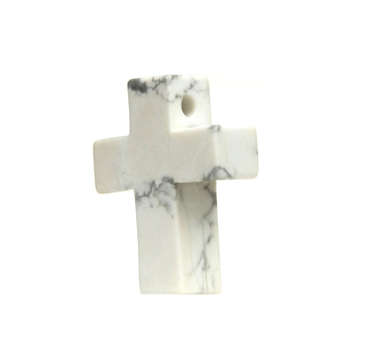 Kors i flott grå/hvit howlitt med 3mm hull til lærsnor.