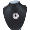 Polert anheng i oransje karneol med sølvfarget oppheng til kjede.