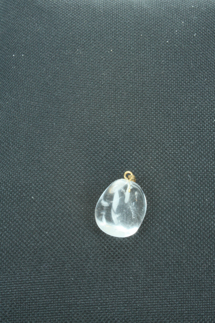 Polert anheng i klar bergkrystall med sølvfarget oppheng for kjede.