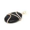 Polert, ovalt anheng i lys månestein med flott mønster og ståltråd tvinnet rundt.