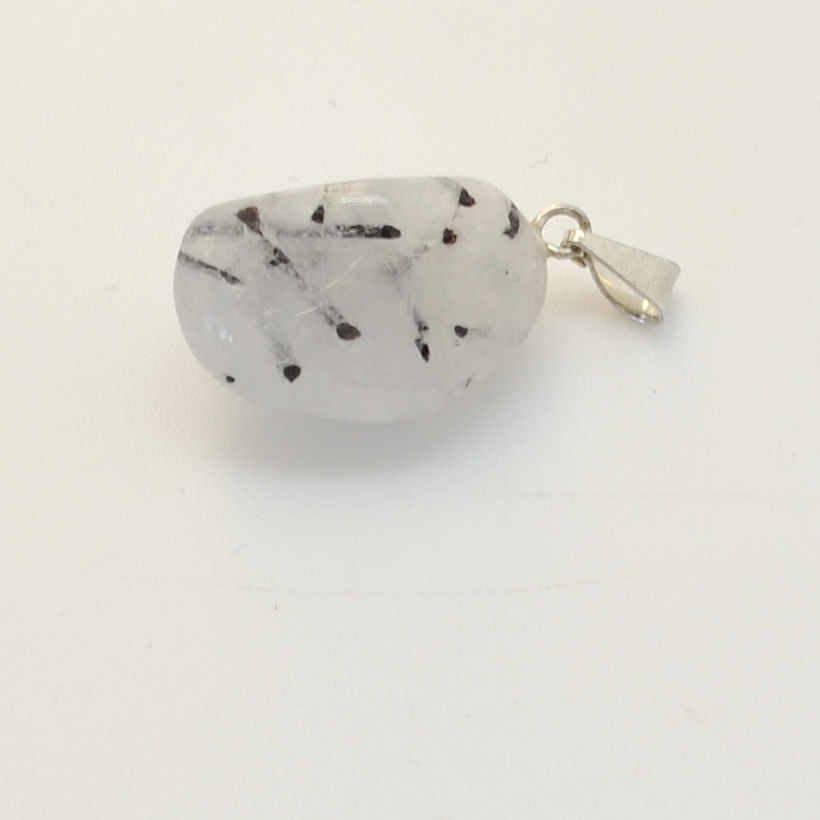Polert anheng med sorte «staver» av turmalin inni hvit kvarts.