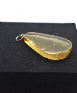 Gult, gyllent og klart anheng i skinnende gul rav. Anhenget er polert, lett og har oppheng for kjede.