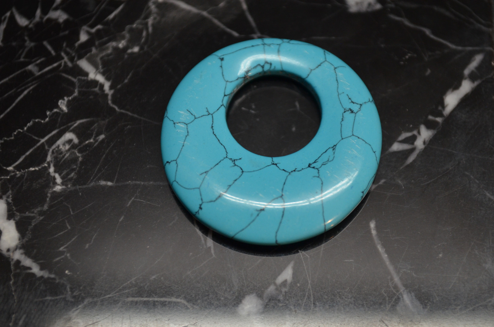 Donut i turkis, 30mm i diameter med hull til lærsnor.