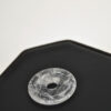 Anheng med stort, lysegrått, skinnende skjell og metalloppheng med plass til tykt kjede.