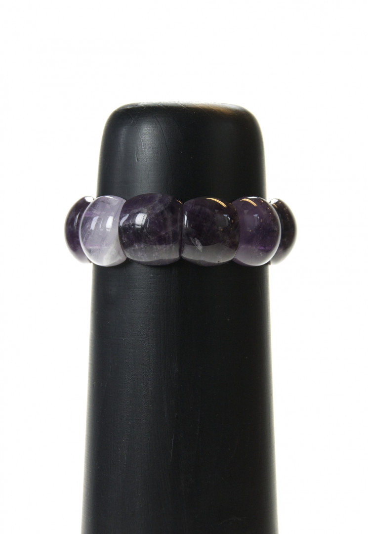 Elastisk armbånd med kraftige ovale, buede ametyster som ligner negler. Ca 2 cm bredt.