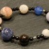Elastisk armbånd med store kuler i matt. sort agat m/skalle. 22 cm og kuler i 12mm.