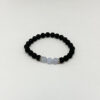 Elastisk armbånd med sylinderformede trommer i røykkvarts og smale perler i blank hematitt.
