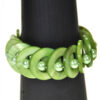 Lett, elastisk armbånd med grønne, runde skjell og rosa perler