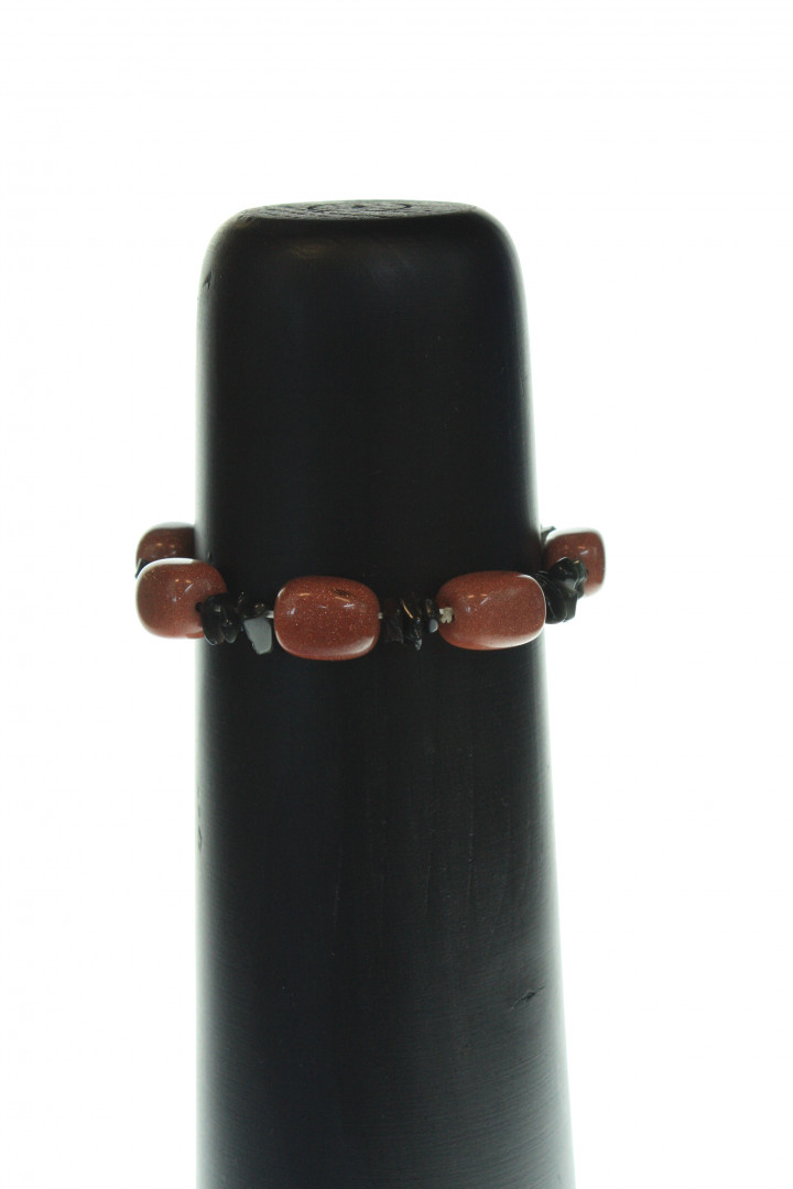 Elastisk armbånd med tromlete steiner gylden goldstone og små chips i black stone innimellom.