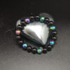 Enkelt armbånd med hematittkuler der hver 4 kule er i regnbuehematitt og skaper en skinnende effekt.
