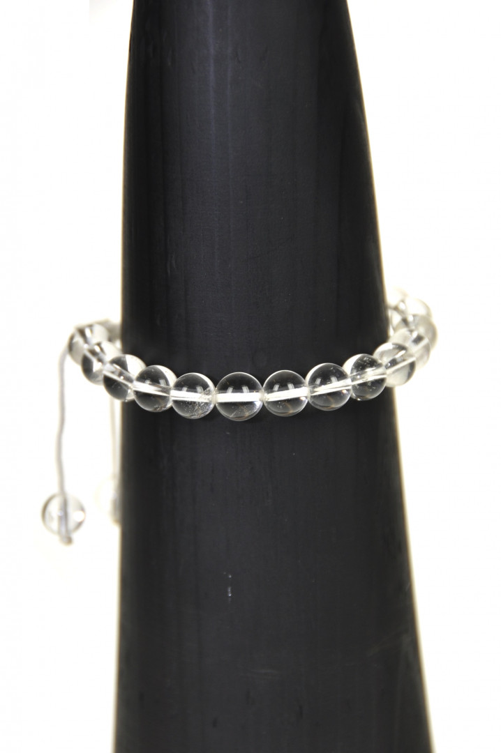 Regulerbart armbånd med 8mm kuler i bergkrystall. Blankt og passer til alt!