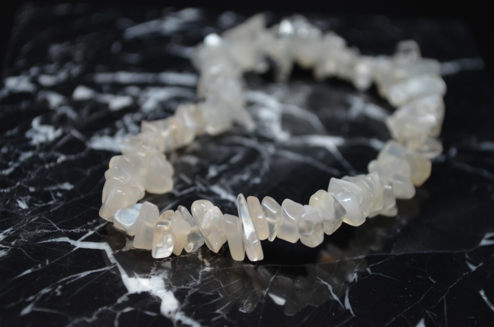 Elastisk, enkelt chipsarmbånd med hvit agat.