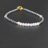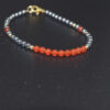 Smalt armbånd med 4mm kuler i matt hematitt og rød agat med metallås.