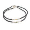 Petit armbånd med små kuler i matt rosa kvarts og sort agat, med metallås. Armbåndet passer fint å kombinere med andre petitarmbånd eller andre armbånd med større steinkuler.