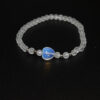 Elastisk armbånd med smale, polerte sodaitt stein. Fargene er blå med hvit marmorering. 18cm i diameter.