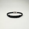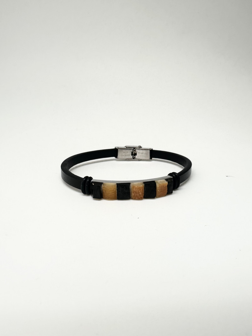 Smalt lærarmbånd med sort og oransje rav