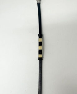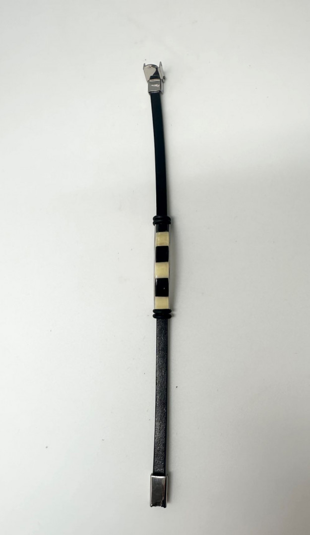 Smalt lærarmbånd sort og gul rav