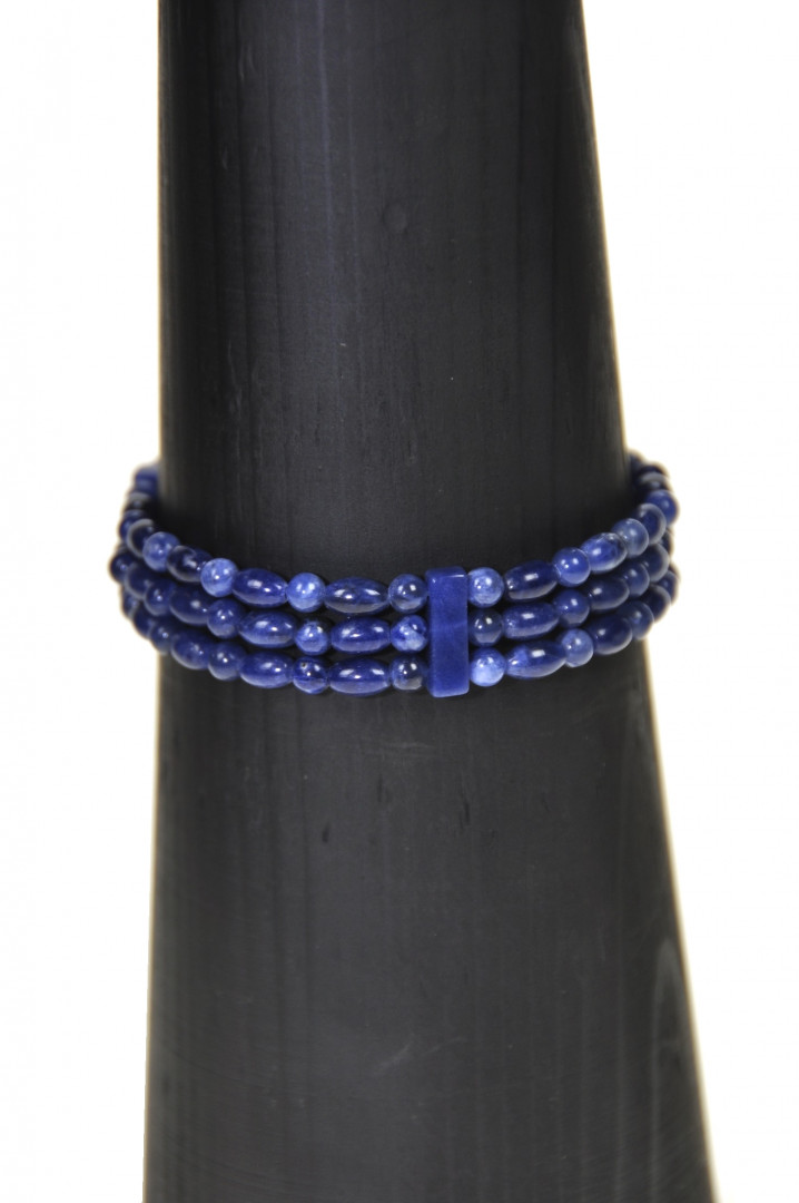 Armbånd med tre rader med kuler og risformede Sodalitt på elastisk strikk.
